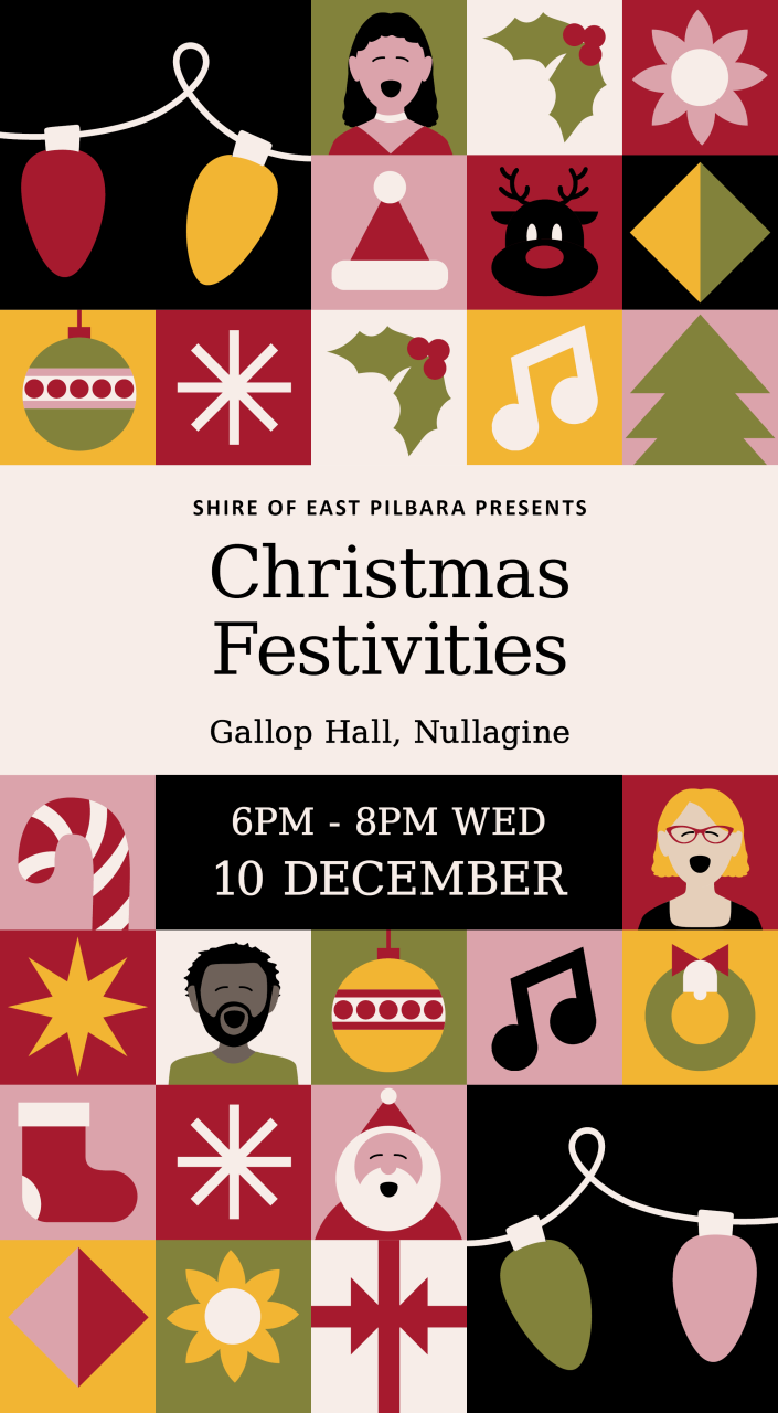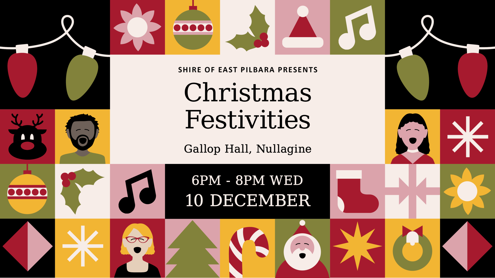 Celebrate this festive season with the Shire of East Pilbara at our annual Christmas Festivities! Enjoy Xmas Dinner, a visit from Santa and the Christmas Lights Display and plenty of family fun.
