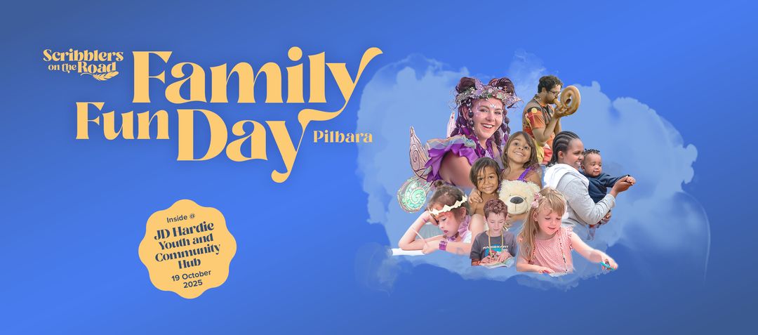 To find out more about Scribblers events in your area, including our FREE Family Fun Day in South Hedland on 19 October 2025, head to scribblersfestival.com.au/scribblers-on-the-road.