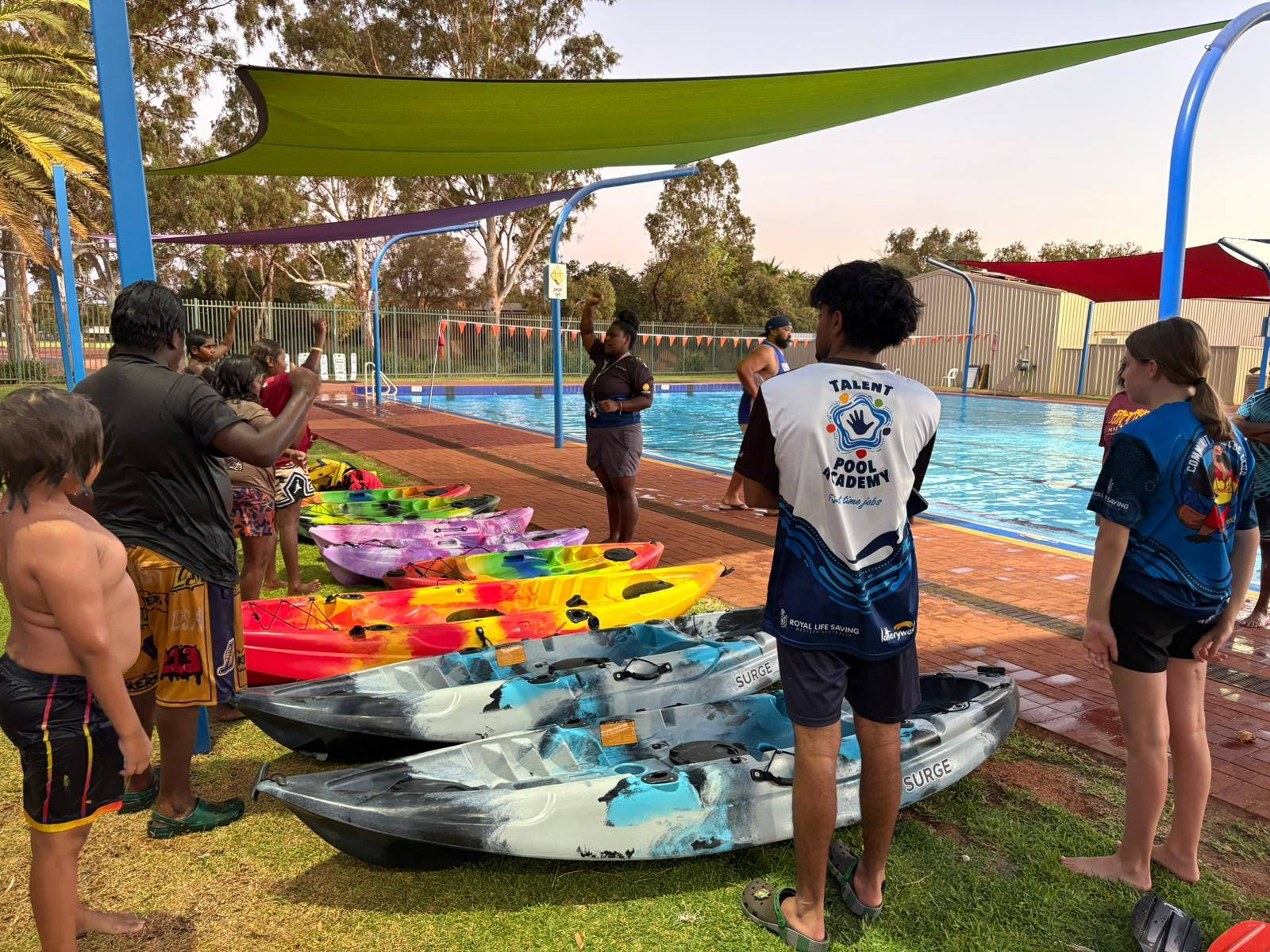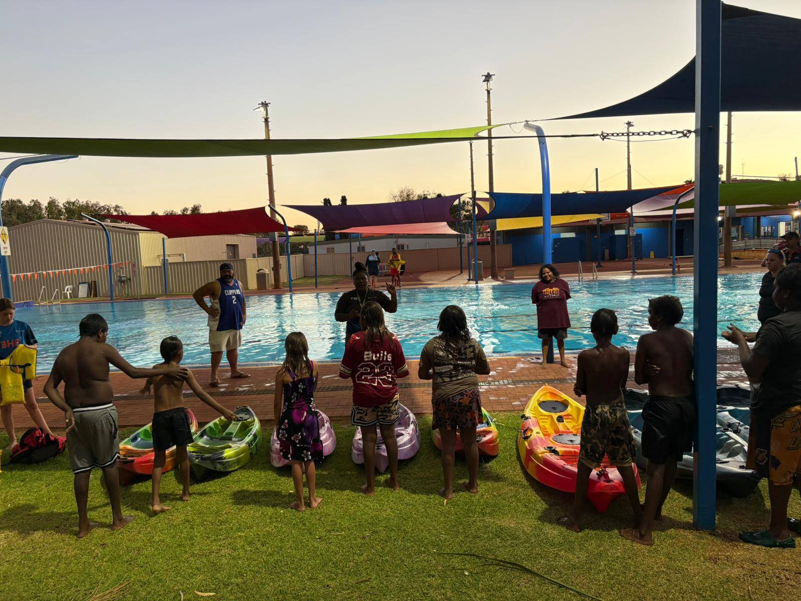 The Kayak Club was established by The Y Newman (YMCA WA) – Pakala Jijikaja Yankuni-la (Get up Young People let’s go) Program due to varying water conditions in local creeks that limited on-Country kayaking activities. To ensure young people could continue kayaking in a safe and accessible setting, the program was relocated to the Shire’s Newman Aquatic Centre and expanded through local partnerships.