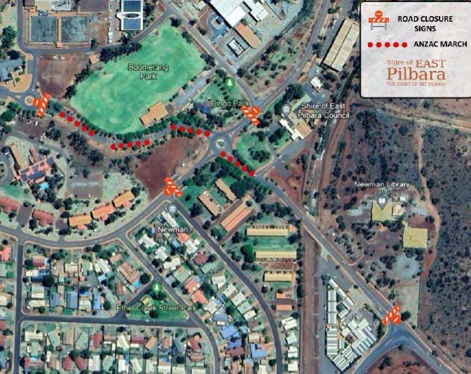 • Partial road closure of Iron Ore Parade and Kalgan Drive from Newman House to Shire of East Pilbara Administration Building.