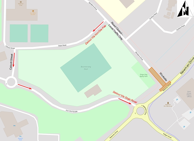 Please be advised that on Saturday 7 November 2020 and for most of the day there will be road improvement works being carried out on Mindarra Drive near the intersection with Newman Drive, Newman as shown on the plan below.